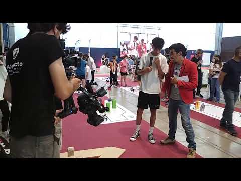 Aquí tenéis a Badr presentando Robolow a las cámaras de Roboreto, y a José Ángel y Adam haciendo una demostración: